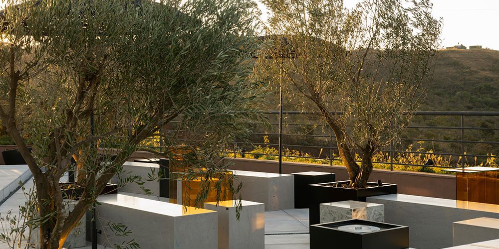 No topo do mundo, entre o céu e a terra, encontra-se o elegante rooftop Alto do Olival. Com oliveiras que evocam tradição e serenidade, este ambiente é um convite para apreciar a beleza natural enquanto desfruta de momentos únicos. A integração de plantas como o capim do Texas oferece um toque de sofisticação e charme.