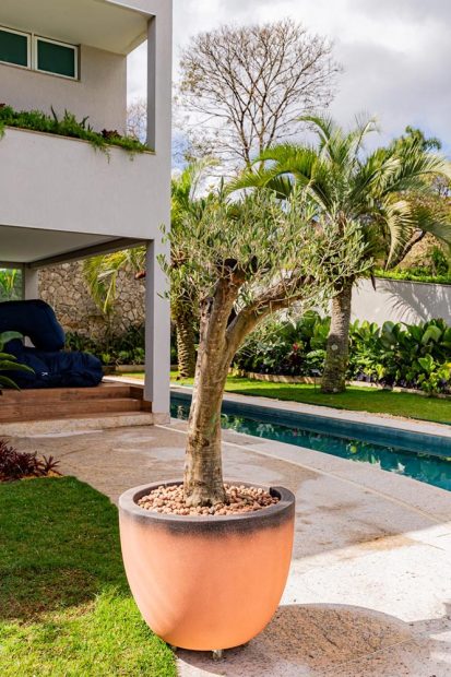 4. Oliveira: Se você busca um toque mediterrâneo no seu jardim, a oliveira é a escolha certa. É uma planta altamente resistente, tolerante ao sol e com baixo consumo de água, ideal para quem gosta de elegância e modernidade.