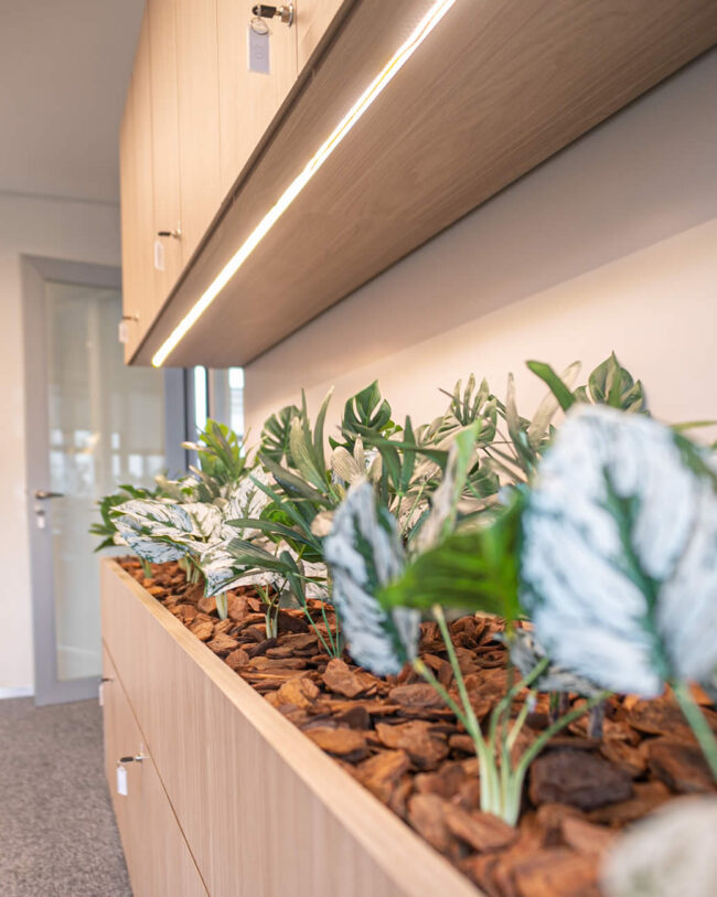 OZMINERALS Feito em parceria com Marcella Tavares Categoria: Corporativo Data: Julho de 2023 Para tornar o escritório da OZ Mineral mais acolhedor, escolhemos plantas permanentes de alta qualidade. Na recepção, instalamos uma parede verde com plantas preservadas, posicionada atrás da logo da empresa para trazer vida aos tons terrosos do ambiente. Na copa, destacamos o…