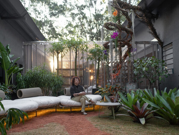 Intitulamos o espaço que criamos para a mostra CASACOR de “Verde para si, Ver a si” pois o espaço foi criado com o intuito de reavivar a memória afetiva dos visitantes, oferecendo um respiro em meio ao agito urbano.